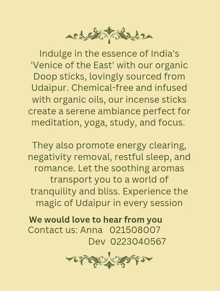 Each stick is hand-rolled using pure, organic ingredients and is completely charcoal-free, ensuring a clean, slow burn with no harmful emissions. Whether you’re setting the tone for meditation, prayer, or simply winding down after a long day, there’s a fragrance in this collection for every occasion.